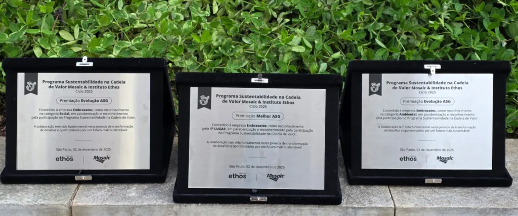 A premiação, realizada pela Mosaic em parceria com o Instituto Ethos, reconhece fornecedores que demonstraram avanços significativos em sustentabilidade ao longo de 2025. As conquistas da Embrasa refletem o empenho contínuo da organização em integrar critérios ambientais, sociais e de governança em sua gestão estratégica, fortalecendo seu papel como agente de transformação positiva no setor.